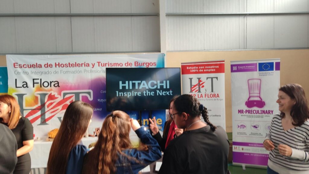 In May 2025, during the Vocational Training Fair held in Burgos, the MR-PreCulinary project was promoted using roll-ups and flyers. The materials aimed to increase the project’s visibility, present its objectives and activities, and inform and engage students, teachers, and visitors from the educational and hospitality sectors. The fair was attended by over 1,000 people, including students and teachers from schools in Burgos and the surrounding province.